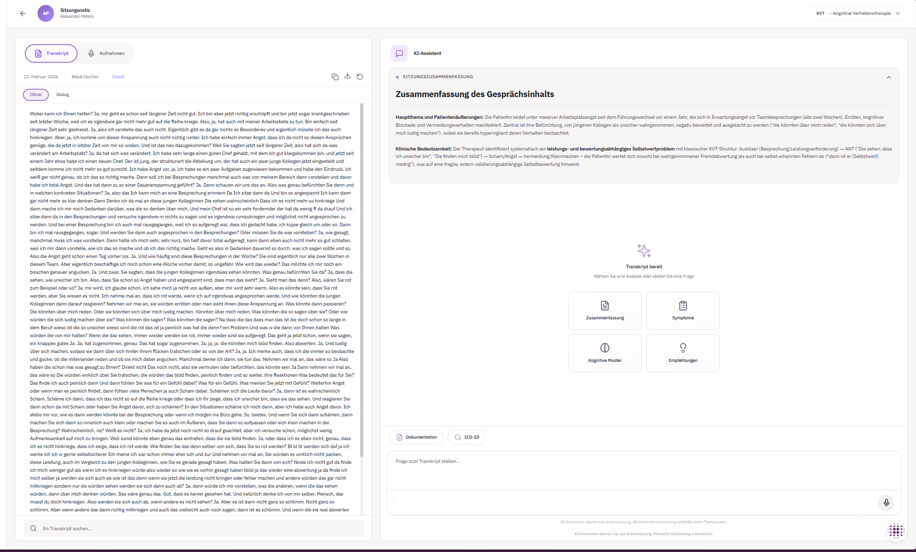 ICD-10-GM Diagnosevorschläge mit direkten Textbelegen aus dem Gespräch