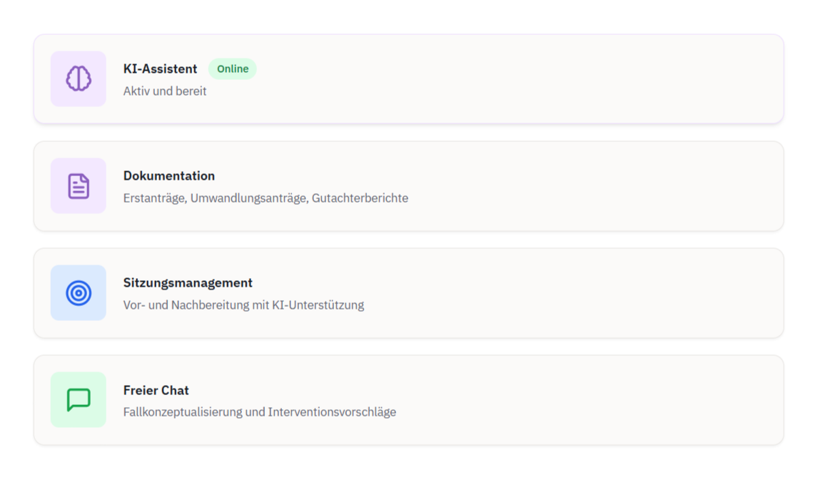 Dieses proprietäre Modell wurde von unserem interdisziplinären Team aus Psychotherapeut:Innen, KI-Entwickler und Linguisten konzipiert, um die spezifischen Anforderungen des therapeutischen Kontextes zu erfüllen.